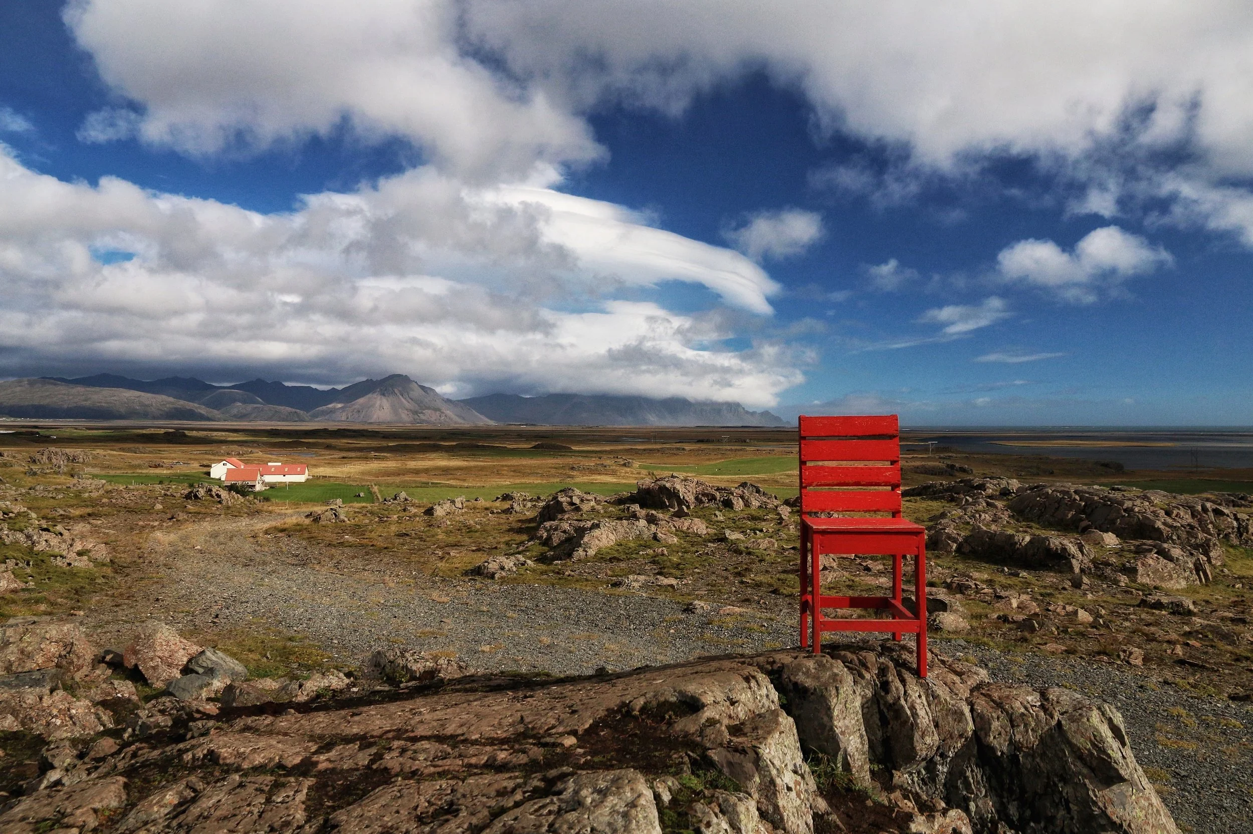 How to find Eystrahorn. The Big Red Chair. The Red Chair This wonderful bright red chair is bolted down to some rocks in the middle of nowhere.